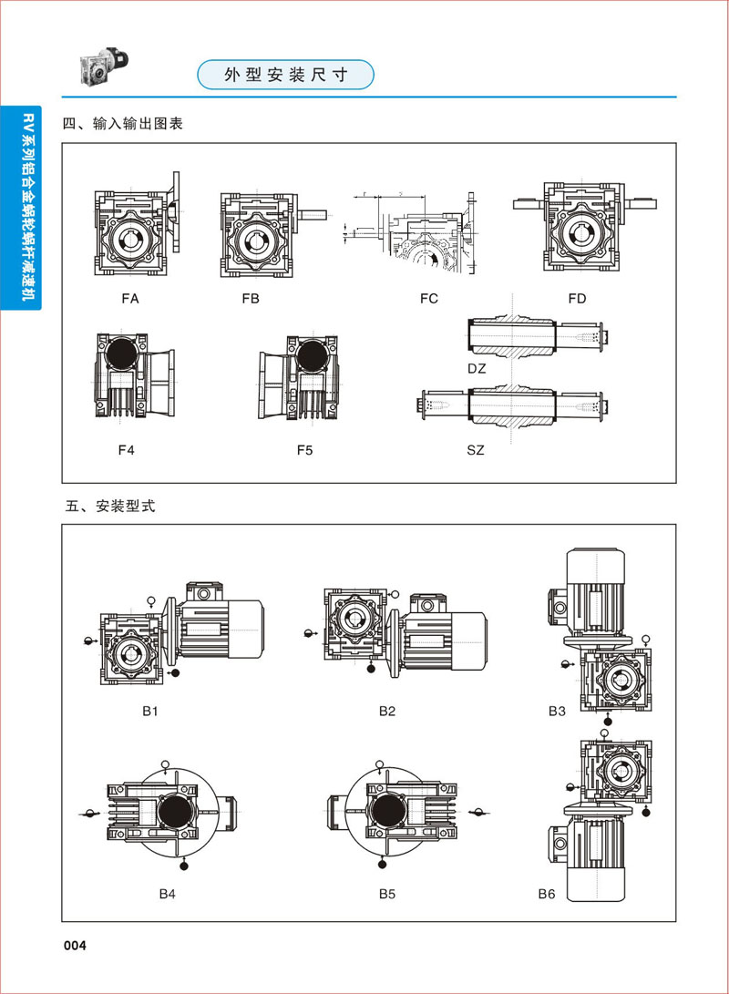 安裝形式 >> RV系列鋁合金蝸輪蝸桿減速機-