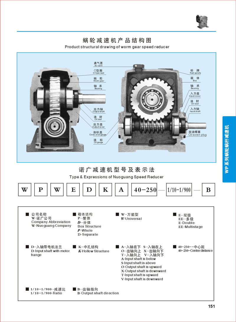 產品參數 >> WP系列蝸輪蝸桿減速機-