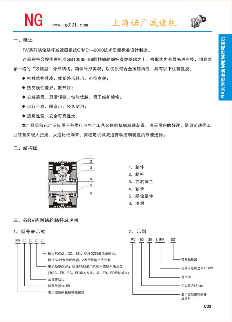 產品參數 >> RV系列鋁合金蝸輪蝸桿減速機-